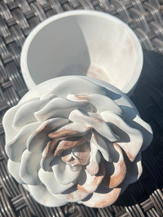 Handcrafted Concrete Rose Vessel with Lid - Unfilled -