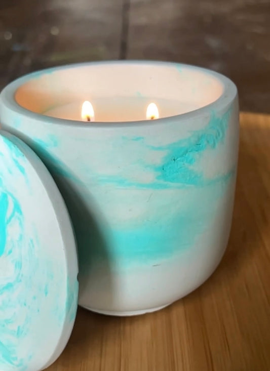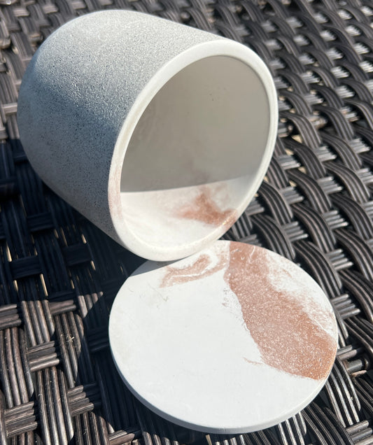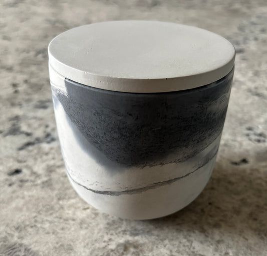 Handcrafted Concrete Seafoam & Sand Vessel with Lid – Soy Wax Candle - Vanilla 9oz