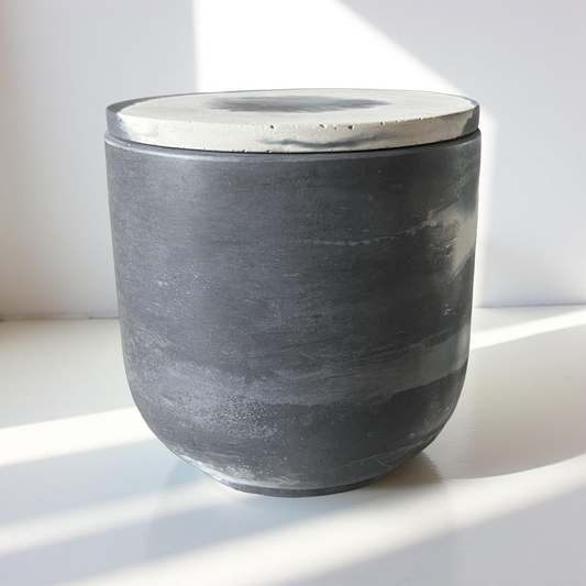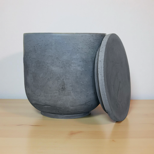 Handcrafted Raw Concrete Vessel with Lid - Unfilled -